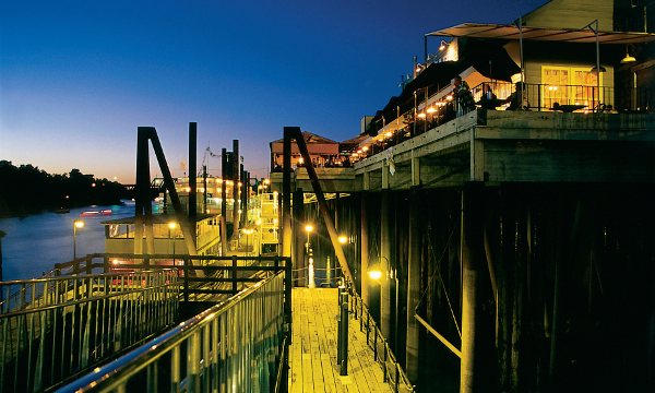 Active nightlife on the river front.